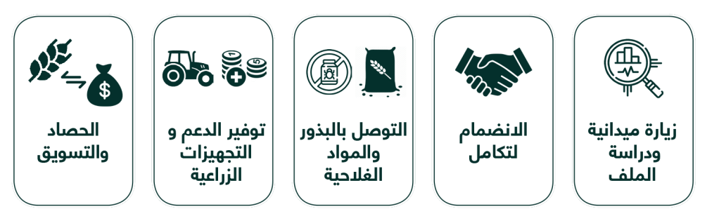 يُسهِّل تكامل الولوج للتمويل والتموين بدون ضمانات وبأسعار تفضيلية، حيث يُغطي البرنامج دورة الإنتاج باكملها، بما في ذلك البذور المعتمدة، المعدات الزراعية، الأسمدة، الأدوية وجميع احتياجات المزارعين بأفضل ثمن. وكذلك يوفر تأمين لتغطية خسائرهم في حالة الظروف المناخية القاسية